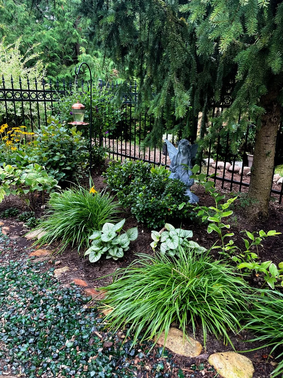 A whimsical perennial flower garden welcomes guests